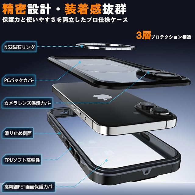 ● 【米軍MIL-STD-810G準拠の耐衝撃設計】 高弾性TPUと強化PC素材を採用し、2mの落下衝撃を吸収します。カメラレンズは2.5mm、画面は1.5mmの段差保護を実現しており、日常使用での擦り傷を徹底的に防止いたします。