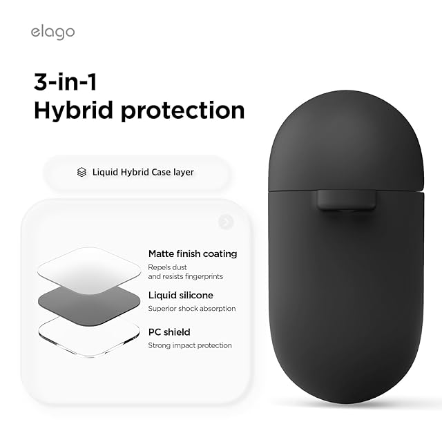 【elago】 AirPods Pro3 対応 ケース シリコン 耐衝撃 ハイブリッド 落下防止 カラビナ 付 おしゃれ カバー ワイヤレス充電 対応 シンプル シリコンケース [ AirPods Pro 3 エアーポッズプロ3 エアポッツプロ 第3世代 対応 ] case LIQUID HYBRID HANG ブラック