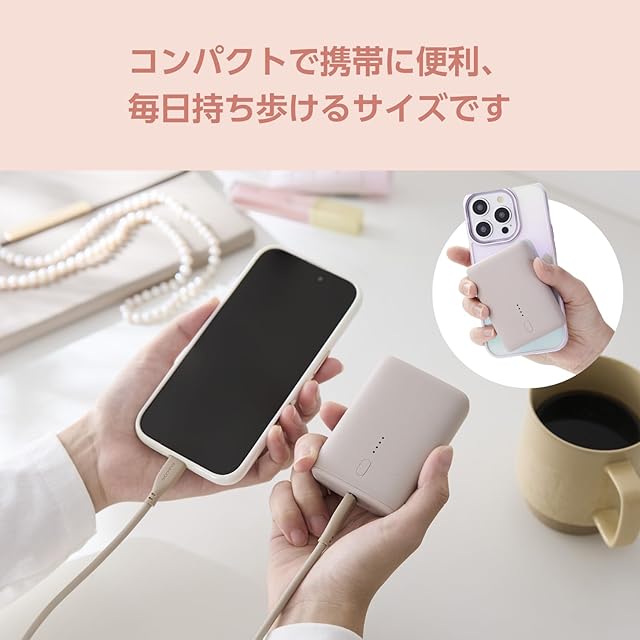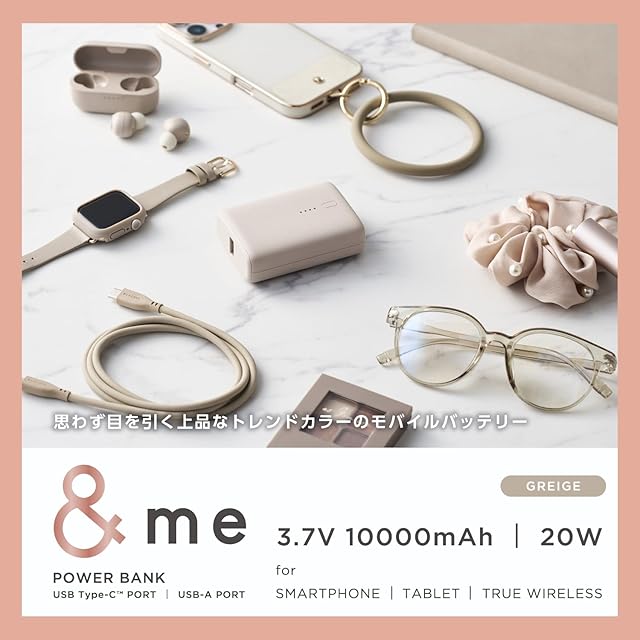 商品名:エレコム モバイルバッテリー &me 10000mAh 20W USB PD対応 Type-C USB-A グレージュ iPhone16対応 DE-C56L-10000GB