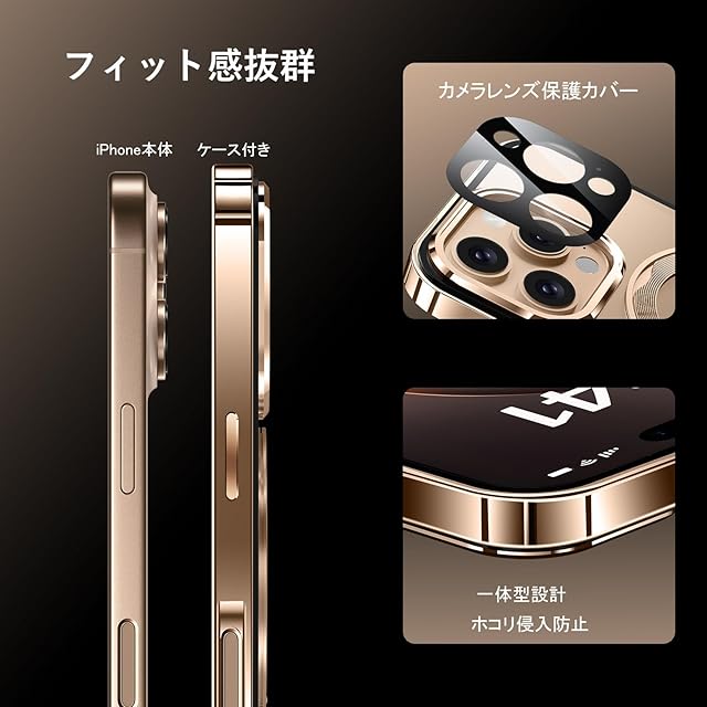 アルミバンパー・ロック機能:フレームは超軽量のアルミ製で、iPhone本体と同じ光沢を持ち、高級感を演出します。サイドボタンやレンズ周りのデザインも統一感を持たせ、使い心地と見た目の美しさを両立しました。前後カバーは嵌め込みデザイン、前後カバーを合わせてから、上部にあるロック機能は自動的にロック、スマホとケースの間に隙間がほとんどありません。これにより、スマートフォンがケースの中で動くことがなく、摩耗を防ぎます。また、上部のアクションボタンを押すだけで、ロックの解除できます。
