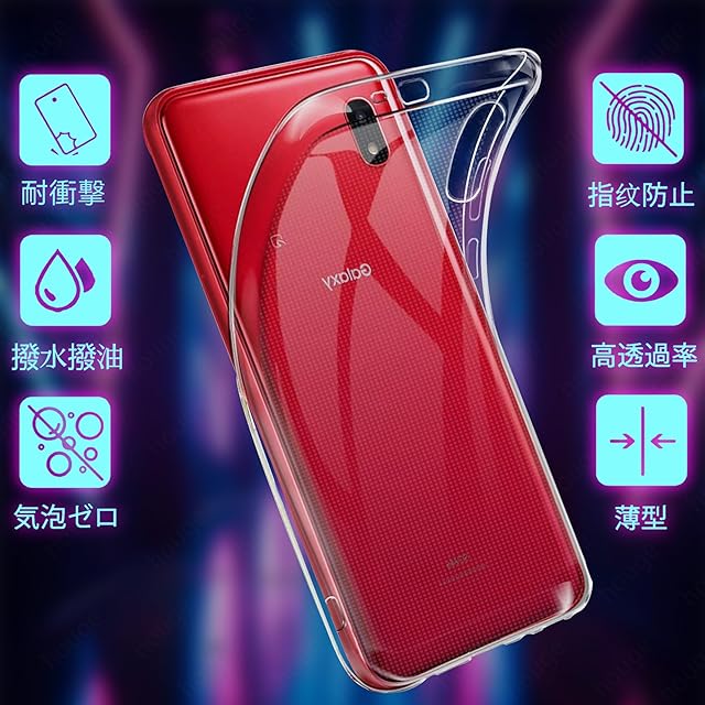 【対応機種】Galaxy A20 / Galaxy A21 / SC-02M / SCV46 / SC-42A / scv49;商品の内容:ケース クリア * 1枚 + ストラップホール付属 ネックストラップ付。<br> 【高透過率】透明度が高く、本体の鮮やかな色をそのまま映し出すことができます;見た目から手触りまで全てが一体となり、手垢や皮脂などを落として常に綺麗な状態を保つことができます。<br> 【耐衝撃】高品質のTPU素材を使用し、ソフトシリコンエッジで外部からの衝撃を吸収することができます;落下や衝撃、擦り傷などからスマホをしっかりと保護します。<br> 【薄型 軽量型】保護性と軽量性の両立を実現し、長く持っても手が疲れる感じもありません;手の汗を防ぎ、滑り止め、またあなたの携帯電話を保護します。<br> 【黄ばみ防止】本製品は高品質のTPU素材を採用し、黄ばみを防止する特殊加工を施しています;装着感と耐久性に優れ、変色や変形も起こりにくくなっています;スマホ本体への擦り傷を防ぐこともできます。<br> 【精密の設計】端末にぴったりフィットするよう設計されており、独自の上下隙間設計により、ボタンの反応が良く、程よい押し心地を実現しています。で正確なカットアウトにより、充電やイヤホン接続などもスムーズに行え、て簡単に装着できます。<br> 【ズレにくく 脱着が楽】本製品は柔らかい素材でできており、スマホに装着したり外したりする時も適度に曲げることができます。<br> 【指紋防止】表面特殊コーティング加工、オイルコーティング加工、高精度の表面処理を採用しています。指紋や汚れがついても、簡単に拭くだけでピカピカになれる。<br> 【疎水性 撥油性】表面に特殊なコーティングを施しており、オイルコーティング加工、スムースタッチ加工など、様々な特殊加工を組み合わせることで、油分やホコリに強く抵抗力を持ち。
