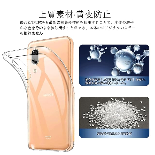 <p> 1.【対応機種】AQUOS sense3/sense3 lite/sense3 basic/Android One S7 907sh/SH-RM12/SH-M12/SHV45/SHV48/SH-02M クリア ケースです。<br>2.【高い透明度】背面は高透明度ポリカーボネートの素材で、スマホ本来の崇高な美しさと色をそのままに生かし、スマホ本来の画面の雰囲気を保ち。 透明度が高く、 本体のオリジナルのカラーを損ねません。ケースの端はダイヤモンドカットプロセスを施すことでより洗練された美しい外観となっています。クリアケースの裏面に、家族やペットの写真、シールなどをいれて自分好みのアレンジできます。<br>3.【黄変防止で長く活用でき!】環境に優しく、無毒無味の高品質素材採用して抗酸化処理が施されており、長く透明度を維持することができます。本来の崇高な美しさと高級感を損なわなく、いつものスマホに上品さをプラス!<br>4.【全面の保護】卓上に置いても傷がつきにくく、滑り止めに効果で、高い耐衝撃性です、ケース背面までも傷から守れます。スマホを全方位からしっかりと守ります。フチをわずかに高く設計することで、を平らな場所に置いたときにスクリーンやカメラがこすれて傷つくのを防ぎます。<br>5.【ウォーターマーク防止】このケースの内側にはマイクロドットが付いているので、ケースがスマホに貼り付くのを防ぐことができ。<br>6.【持ちやすい】軽量な上、厚みもかさばることありません。細かいところにもちょうどよく、穴位置も正しく、すべてのスピーカー、ポート、ボタンは使いやすいです。持ち心地よくて手にフィットして滑りにくいので落としてしまう心配が減らします。<br>7.【スレ傷指紋防止】表面撥油性コーティング設計、滑り止め効果あり、指紋軽減、油汚れ防止、防汗、繊細な手触り感、爽やかな感触も与えます。<br>8.【衝撃吸収】 ケースのバンパーとコーナー部分は、日常生活における衝撃を確実に吸収します、360°全方位からスマホを保護してくれます、落下や衝撃による損傷を軽減します。耐久性に優れた。傷がつきにくいポリカーボネート素材を採用しております。高耐衝撃構造で作られ、熟練の技術に裏付けられたクッション加工、落下衝撃を全方位吸収し、期待に裏切らない頑丈さを持つ。落下の衝撃から重要なスマホを守ってくれます。安定することで、スマホの操作性も優秀です。</p>