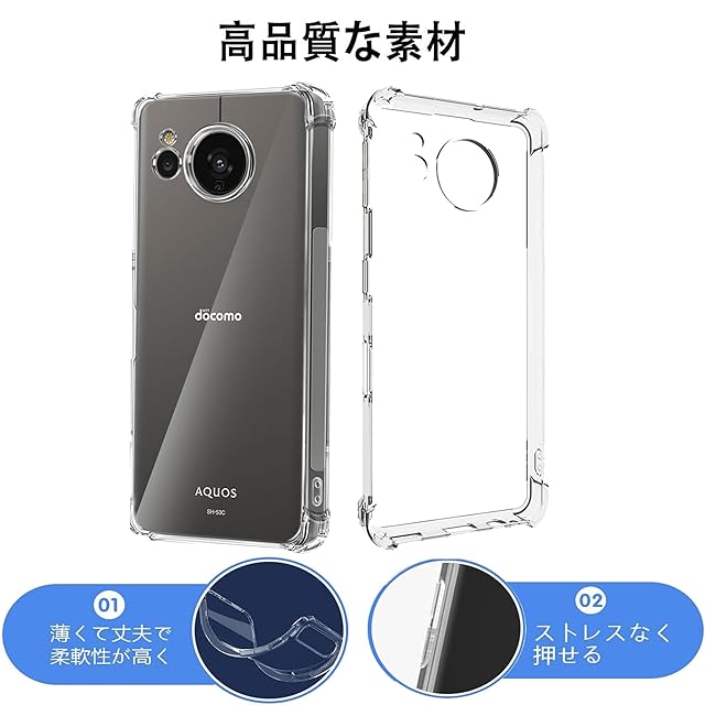 <p>1.【対応機種】AQUOS sense7 SH-53C / SHG10 用の 透明 TPU ケース(1枚)。※ご注意:お買い求めの機種を確認してからご購入をお願いします。</p><p>2.【落下防止】高品質のTPU素材シリコン素材より強く耐久性に優れ、プラスチック素材よりしなやかな弾力性を持つTPU素材を使用しています。磨耗に耐え、滑り止め防塵、分裂防止などの全面の保護を提供します。落ちることでもたらす衝撃力を吸収できるから、壊されないケースである。</p><p>3.【高品質のTPU】高弾性TPU素材を採用。変形防止TPU素材で柔軟性が高く、取り出し易い、装着の際に本体を傷つける心配もありません、スマホ本来の色を楽しめます。</p><p>4.【全面保護】液晶画面やカメラレンズより高く、卓上に置いても傷がつきにくい。また本ケースの角には落下時の衝撃を吸収するエアポケットを備えており、滑り止めにも効果的で、万が一スマホを落としてしまった場合でも、落下時のダメージを可能な限り抑えることができます。</p><p>5.【高透明度】 透明度が高く、本体の鮮やかな色をそのまま映し出すことができ、(型号)のオリジナルのカラーを損ねません。美しさはそのままに、本体を保護しているのです。</p><p>6.【フィット感満点・持ちやすい】一体成型製法のお陰様で、ボタンも押しやすいし、サイズもカメラレンズの穴もピッタリとはまります。また、サイド部分にはザラザラ加工されているので滑りにくくなってます。シンプルで嵩張らず、手にフィットして使いやすい。</p><p>7.【傷も指紋も防止】 いつも指紋や油汚れに悩んでいますか。携帯保護ケースをお選びください。高精度の表面処理を採用して、しかも携帯電話ケース全体にも防汚バイオテクノロジーを採用しており、指紋や汚れがついても、水洗いして布で軽く拭くとピカピカになります。</p><p>8.【黄ばみ防止】 高品質TPU素材を採用して、黄変防止の特殊加工を施しているため、 を長持ちさせることができます;環境に優しい抗酸化処理が施されており、装着感と耐久性備えて、変色変形しにくくなっています;夏も冬もサラサラでピカピカする状態;爽やかな感触も与えます、スマホ本体への擦り傷も心配無用です。</p>