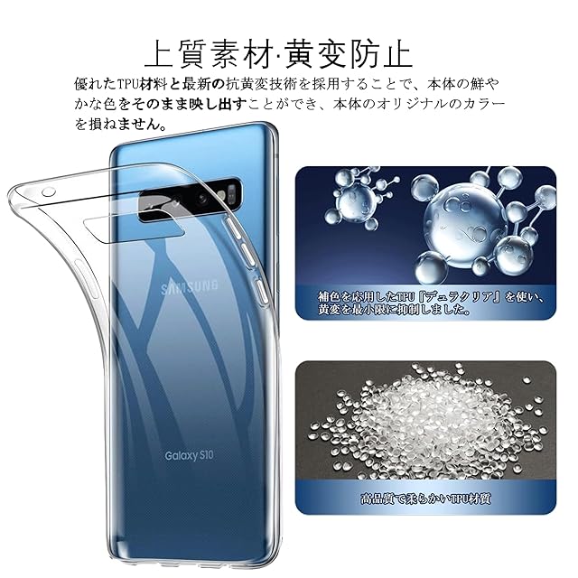 <p>1.【対応機種】Galaxy S10 SC-03L SCV41 クリア ケースです。<br>2.【高い透明度】背面は高透明度ポリカーボネートの素材で、スマホ本来の崇高な美しさと色をそのままに生かし、スマホ本来の画面の雰囲気を保ち。 透明度が高く、 本体のオリジナルのカラーを損ねません。ケースの端はダイヤモンドカットプロセスを施すことでより洗練された美しい外観となっています。クリアケースの裏面に、家族やペットの写真、シールなどをいれて自分好みのアレンジできます。<br>3.【黄変防止で長く活用でき!】環境に優しく、無毒無味の高品質素材採用して抗酸化処理が施されており、長く透明度を維持することができます。本来の崇高な美しさと高級感を損なわなく、いつものスマホに上品さをプラス!<br>4.【全面の保護】卓上に置いても傷がつきにくく、滑り止めに効果で、高い耐衝撃性です、ケース背面までも傷から守れます。スマホを全方位からしっかりと守ります。フチをわずかに高く設計することで、を平らな場所に置いたときにスクリーンやカメラがこすれて傷つくのを防ぎます。<br>5.【ウォーターマーク防止】このケースの内側にはマイクロドットが付いているので、ケースがスマホに貼り付くのを防ぐことができ。<br>6.【持ちやすい】軽量な上、厚みもかさばることありません。細かいところにもちょうどよく、穴位置も正しく、すべてのスピーカー、ポート、ボタンは使いやすいです。持ち心地よくて手にフィットして滑りにくいので落としてしまう心配が減らします。<br>7.【スレ傷指紋防止】表面撥油性コーティング設計、滑り止め効果あり、指紋軽減、油汚れ防止、防汗、繊細な手触り感、爽やかな感触も与えます。<br>8.【衝撃吸収】 ケースのバンパーとコーナー部分は、日常生活における衝撃を確実に吸収します、360°全方位からスマホを保護してくれます、落下や衝撃による損傷を軽減します。耐久性に優れた。傷がつきにくいポリカーボネート素材を採用しております。高耐衝撃構造で作られ、熟練の技術に裏付けられたクッション加工、落下衝撃を全方位吸収し、期待に裏切らない頑丈さを持つ。落下の衝撃から重要なスマホを守ってくれます。安定することで、スマホの操作性も優秀です。</p>