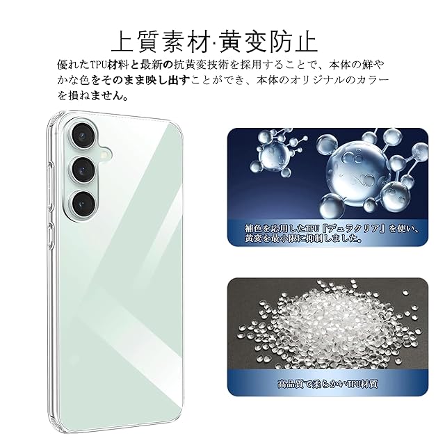 <p>1.【対応機種】Galaxy S23 FE SCG24 クリア ケースです。<br>2.【高い透明度】背面は高透明度ポリカーボネートの素材で、スマホ本来の崇高な美しさと色をそのままに生かし、スマホ本来の画面の雰囲気を保ち。 透明度が高く、 本体のオリジナルのカラーを損ねません。ケースの端はダイヤモンドカットプロセスを施すことでより洗練された美しい外観となっています。クリアケースの裏面に、家族やペットの写真、シールなどをいれて自分好みのアレンジできます。<br>3.【黄変防止で長く活用でき!】環境に優しく、無毒無味の高品質素材採用して抗酸化処理が施されており、長く透明度を維持することができます。本来の崇高な美しさと高級感を損なわなく、いつものスマホに上品さをプラス!<br>4.【全面の保護】卓上に置いても傷がつきにくく、滑り止めに効果で、高い耐衝撃性です、ケース背面までも傷から守れます。スマホを全方位からしっかりと守ります。フチをわずかに高く設計することで、を平らな場所に置いたときにスクリーンやカメラがこすれて傷つくのを防ぎます。<br>5.【ウォーターマーク防止】このケースの内側にはマイクロドットが付いているので、ケースがスマホに貼り付くのを防ぐことができ。<br>6.【持ちやすい】軽量な上、厚みもかさばることありません。細かいところにもちょうどよく、穴位置も正しく、すべてのスピーカー、ポート、ボタンは使いやすいです。持ち心地よくて手にフィットして滑りにくいので落としてしまう心配が減らします。<br>7.【スレ傷指紋防止】表面撥油性コーティング設計、滑り止め効果あり、指紋軽減、油汚れ防止、防汗、繊細な手触り感、爽やかな感触も与えます。<br>8.【衝撃吸収】 ケースのバンパーとコーナー部分は、日常生活における衝撃を確実に吸収します、360°全方位からスマホを保護してくれます、落下や衝撃による損傷を軽減します。耐久性に優れた。傷がつきにくいポリカーボネート素材を採用しております。高耐衝撃構造で作られ、熟練の技術に裏付けられたクッション加工、落下衝撃を全方位吸収し、期待に裏切らない頑丈さを持つ。落下の衝撃から重要なスマホを守ってくれます。安定することで、スマホの操作性も優秀です。</p>