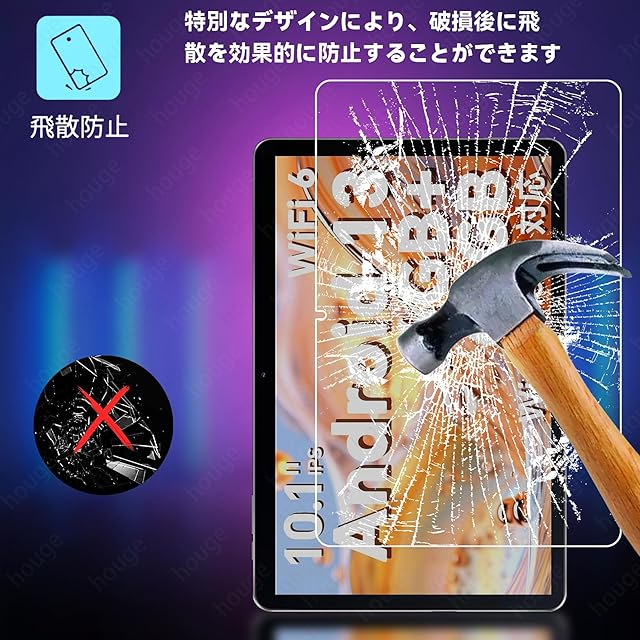 商品名:houge 【 タブレット用保護フィルム 】 OSCAL PAD50WIFI 用の ガラスフィルム PAD50 WIFI 用の 強化ガラス タブレット 液晶保護フィルム 10.1インチ 飛散防止 硬度9H 指紋防止 高透過率 気泡防止 撥水撥油 貼り付け簡単 衝撃吸収 耐衝撃 OSCAL PAD50WIFI