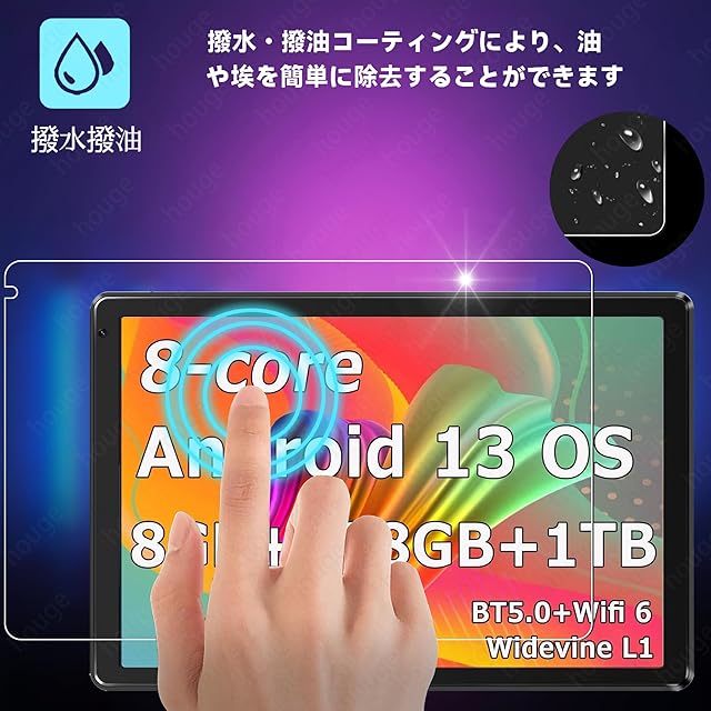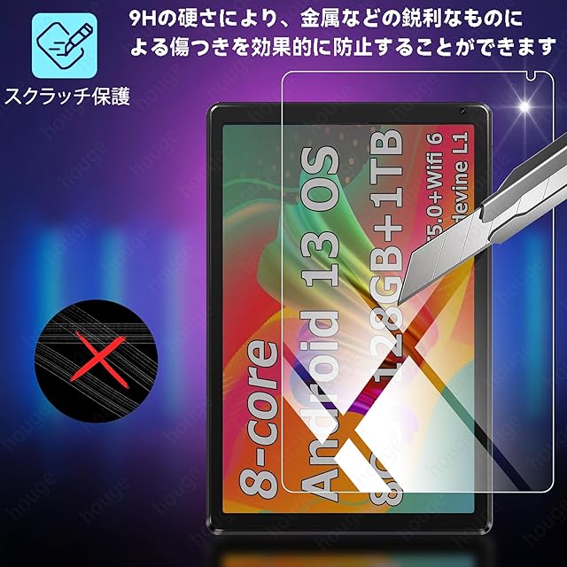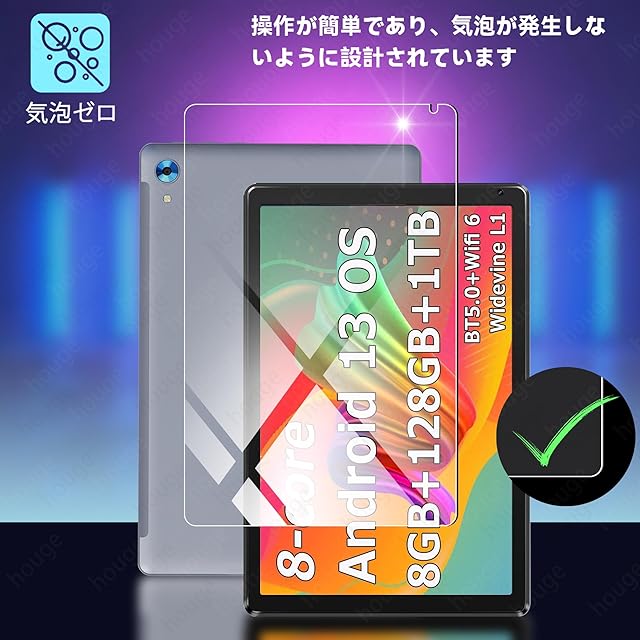 商品名:houge 【 タブレット用保護フィルム 】 Dewsod/HiGrace OC101 / Cheerjoy/Velorim/Lville 用の ガラスフィルム HiGrace Widevine L1 用の 強化ガラス タブレット 液晶保護フィルム 10インチ 飛散防止 硬度9H 指紋防止 高透過率 気泡防止 撥水撥油 貼り付け簡単 衝撃吸収 耐衝撃 Dewsod