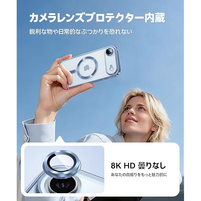 商品名:【本体の色・人気五色】JUESHITUO iPhone Air 用の ケース マグネット搭載 MagSafe充電対応 一体型レンズ保護 黄変なし 1Xスクリーン保護付き 米軍MIL規格 ストラップホール有り iphone 17 air ケース クリア 6.5 インチ スカイブルー