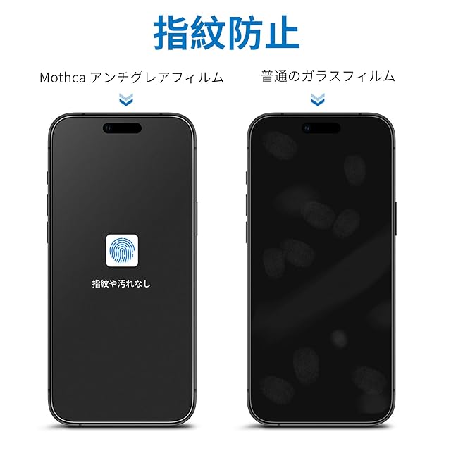商品名:Mothca アンチグレア iPhone Air対応 ガラスフィルム 保護フィルム 強化ガラス サラサラ タッチ感 指紋防止 反射防止 ゲームフィルム ガイド枠付き 液晶 日本旭硝子製素材 硬度9H 飛散/キズ防止 衝撃吸収 撥油性 疎水 アイフォン エア(6.6インチ)対応