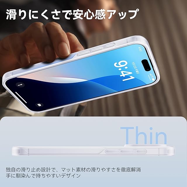 【滑り止め&指紋防止・すごく持ちやすさ】艶消しでマットな質感で手に持った時は背面が滑ることもなくフィットして、サラサラとした触り心地が最高のケース!また、側面の滑り止め設計により、滑りにくさが5倍向上し、持ち心地が従来品より63%改善。手にしっかり馴染み、滑り落ちる心配もない。特許取得済みの撥油塗装で、5年後でもさっぱりした質感を維持し、指紋の付着問題を完全に解消!マットな質感、触り心地、見た目、どれを取っても優勝!