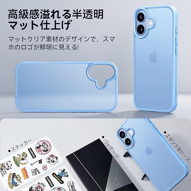 商品名:【米軍MIL規格・指紋防止】CASEKOO iPhone 17 用 ケース 耐衝撃 滑り止め 指紋防止 米軍MIL規格 マット仕上げ ストラップホール付き 黄変防止 耐久性 カバー ワイヤレス充電対応 アイフォン 17 用ケース 6.3 インチ(ライトブルー)