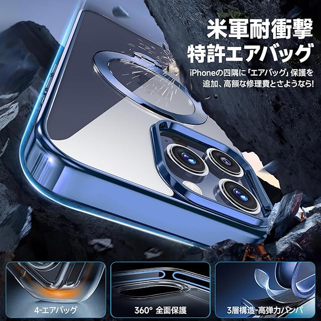 【三重保護セット!永久黄変防止】OYR iPhone 13 Pro用クリア ケース Magsafe 対応[360°回転CD スタンド・10 万回開閉テスト][メッキバンパー・iPhone専属色][カメラ保護とガラスフィルム付き]ストラップホール付き マグセーフ アイホン13プロケース マホケース13 Pro 人気 米軍MIL規格取得・耐衝撃(6.1インチ・ブルー)