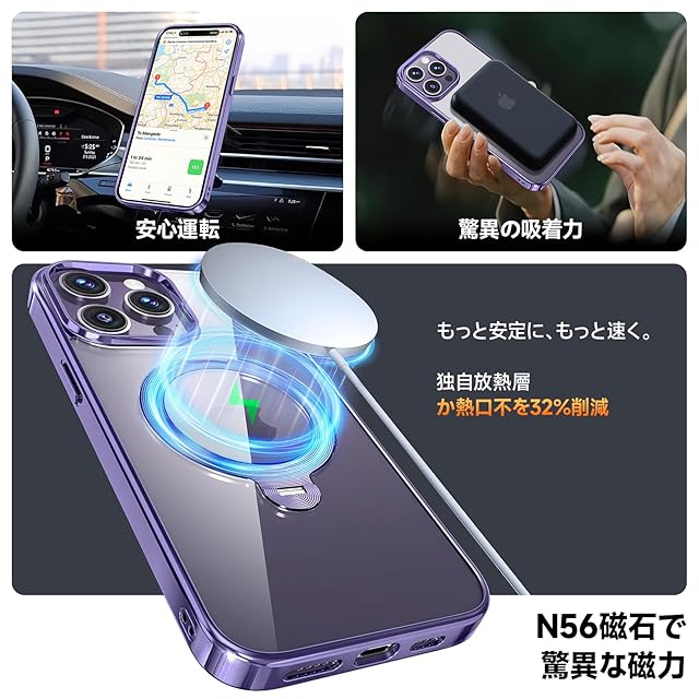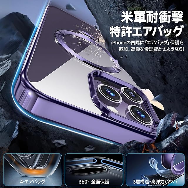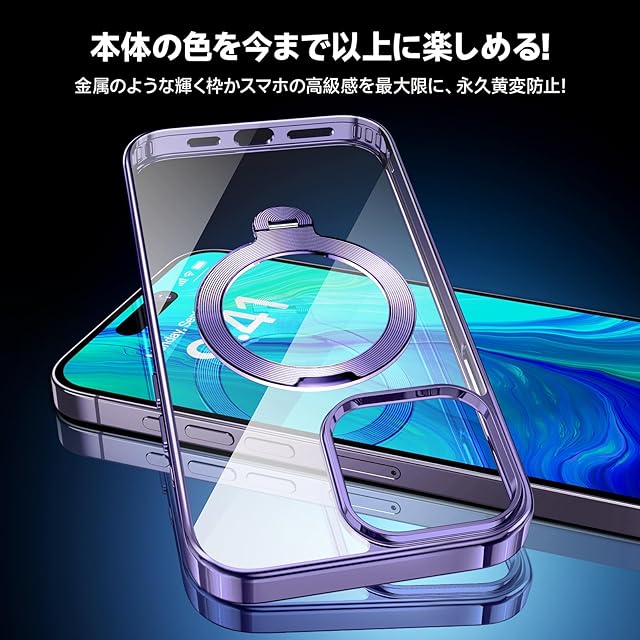 商品名:【三重保護セット!輝くメタリック光沢】OYR iPhone 14 Pro Max 用 クリア ケース Magsafe 対応[360°回転CD スタンド・10 万回開閉テスト][メッキバンパー・iPhone専属色][カメラ保護とガラスフィルム付き]ストラップホール付き マグセーフ アイホン14プロマックスケース マホケース14 Pro Max 人気 米軍MIL規格・耐衝撃(6.7“ディープパープル)