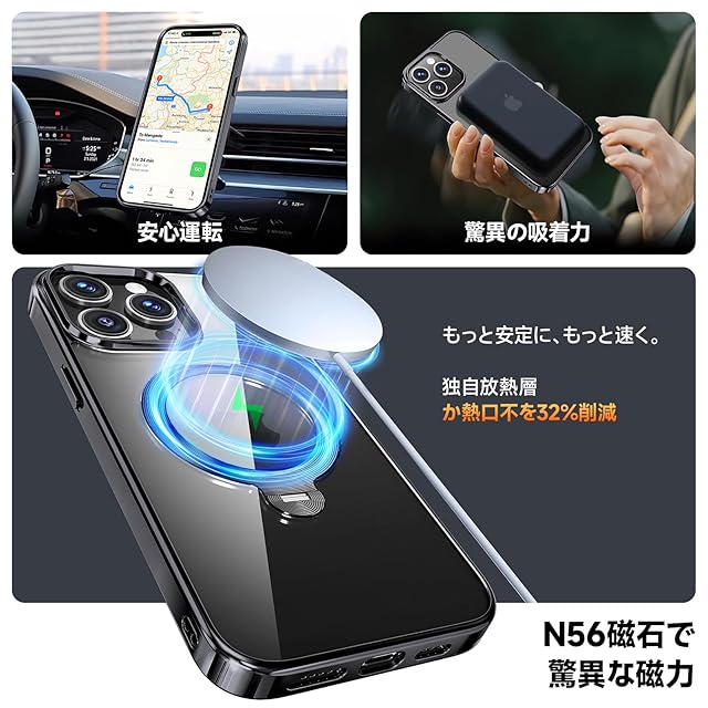 商品名:【三重保護セット!上品なメタリック光沢】OYR iPhone 14 Pro 用 クリア ケース Magsafe 対応[360°回転CD スタンド・10 万回開閉テスト][メッキバンパー・iPhone専属色][カメラ保護とガラスフィルム付き]ストラップホール付き マグセーフ アイホン14プロケース マホケース14 Pro 人気 米軍MIL規格取得・耐衝撃(6.1インチ・ブラック)