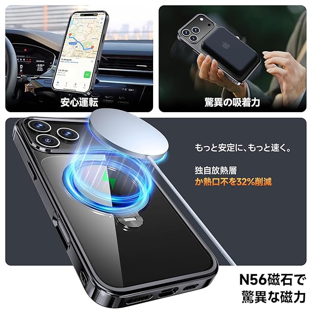 商品名:【三重保護セット!上品なメタリック光沢】OYR iPhone 17 Pro Max用クリア ケース Magsafe 対応[360°回転CD スタンド・10 万回開閉テスト][メッキバンパー・iPhone専属色][カメラ保護とガラスフィルム付き]ストラップホール付き マグセーフ アイホン17プロマックスケース マホケース17 Pro Max 人気 米軍MIL規格取得・耐衝撃(6.9インチ・ブラック)