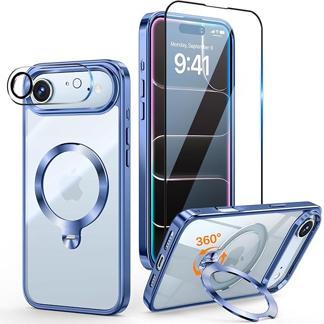 商品名:【三重保護セット!上品なメタリック光沢】OYR iPhone Air用クリア ケース Magsafe 対応[360°回転CD スタンド・10 万回開閉テスト][メッキバンパー・iPhone専属色][カメラ保護とガラスフィルム付き]ストラップホール付き マグセーフ アイホンエアケース マホケースAir 人気 米軍MIL規格取得・耐衝撃(6.5インチ・ブルー)