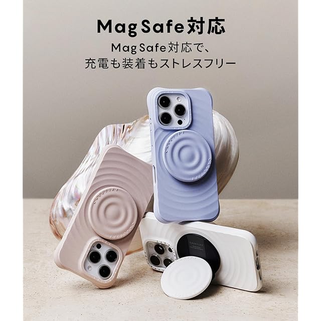 上品な波型シリコン×耐衝撃で、毎日の通勤や会議の装いにもぴったり。シンプル&モダン、MagSafe対応で洗練された大人の魅力をキープ!