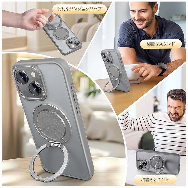 商品名:【Magsafe対応・スタンド付き】Mcoifull iPhone14 ケース iPhone13 ケース マグネット搭載 ワイヤレス充電 耐衝撃 マット感 半透明 指紋防止 アジャスタブルスタンド アイフォン14 ケース アイフォン13 ケース グレー