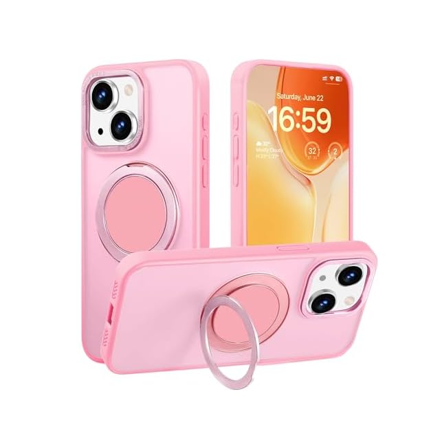 【Magsafe対応・スタンド付き】Mcoifull iPhone14 ケース iPhone13 ケース マグネット搭載 ワイヤレス充電 耐衝撃 マット感 半透明 指紋防止 アジャスタブルスタンド アイフォン14 ケース アイフォン13 ケース ピンク
