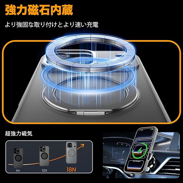 【MagSafe対応】iphone17 pro maxの代替品 magsafe対応ケースは、背面に薄くて強力なマグネットを内蔵しており、ワイヤレス充電や車載ホルダー、アクセサリーとの安定した接続が可能です。差し込む必要がなく、より簡単かつ迅速に充電できます。