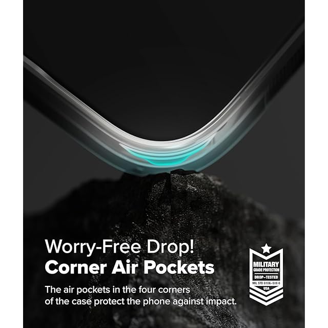 【エアスペース設計】衝撃を吸収する角部分のエアスペース設計とクショニングを考慮した高弾性素材技術でスマートフォンを強力に保護します。