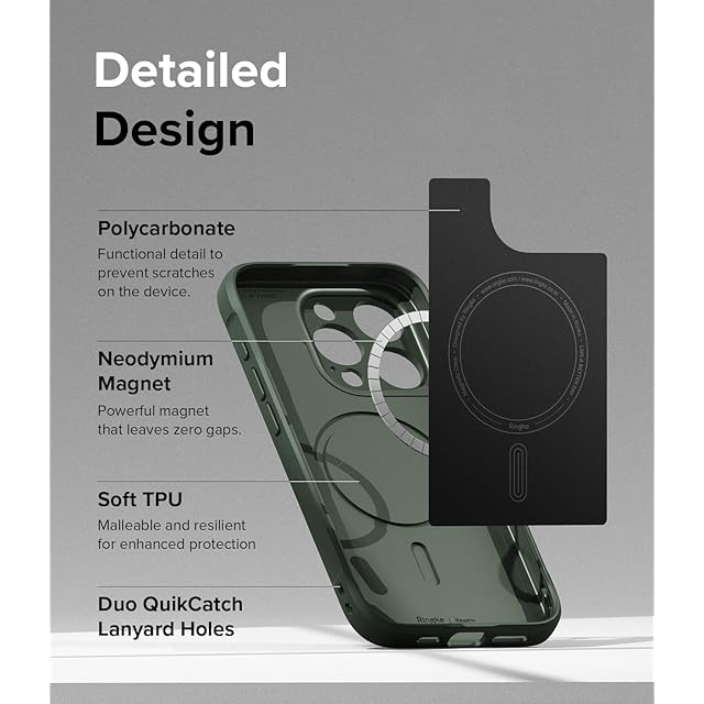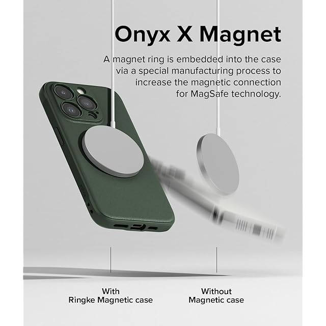 Ringke Onyx CaseをMagneticと結合させるとどうなると思いますか? 堅牢な保護ケースで、スタイルと機能の両方においてトップクラスです!<br><br> Ringke Onyx Magneticはケースの中に隠された磁気リングを搭載し、MagSafe対応充電器やアクセサリの装着力を高め、iPhone 15ならではの磁気機能をフル活用!<br><br> Ringke Onyx Magneticは、高品質で柔軟なTPU素材で作られており、スマートフォンのスリムで合理的なビルドを維持すると同時に、デバイスのすべての端と曲線に沿って輪郭を描く丈夫で復元力のある保護層を追加するために精密に切断されています。<br><br> TPU素材は、日常使用時の傷や擦り傷からの保護を最適化する柔軟なフィットでデバイスを固定するために特化されています。<br> ケースの側面に沿ってミニ円形エンボスパターンが走り、携帯電話のグリップ感を高め、偶発的な落下を防ぎます。<br> ケースの背面は指紋に強いマットな質感で、肌に柔らかさを感じ、快適で長時間のデバイス使用が可能です。<br><br> また、前面リップがスリムに隆起しているため、下向きに置くと画面が平らな面に触れないように保護され、背面カメラのベゼルは傷を防止しながら高品質の撮影が可能です。<br><br> Duo-QuikCatchのランヤードホールは、あらゆる状況に対応して携帯性に優れたデバイスです! 指、手首、ネックストラップなどの付属品を装着することで、簡単かつ便利に携帯できます。 クロスボディーストラップでも、アップグレードされたQuikCatchランヤードホールで携帯電話を固定することができます。 **トラップは含まれません**