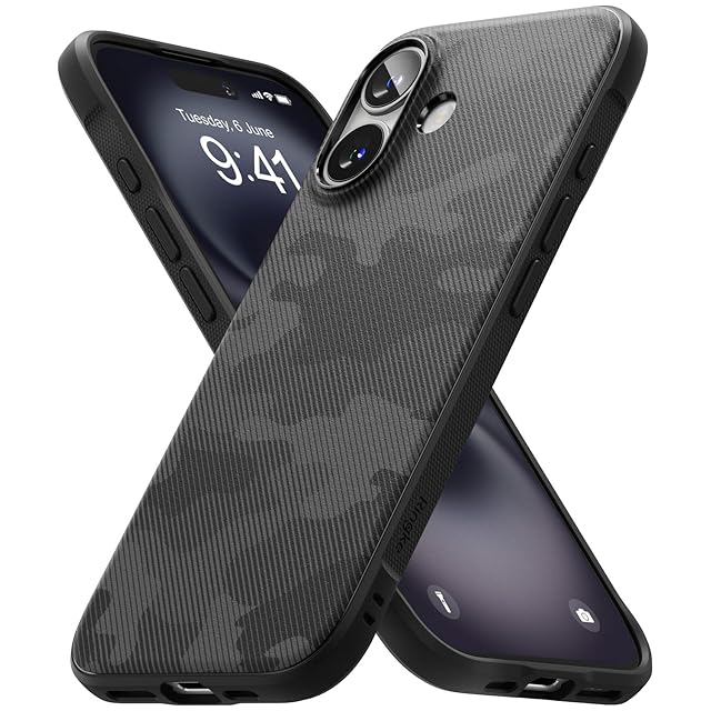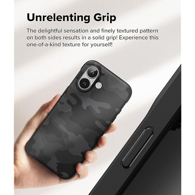【Ringke】iPhone 16 ケース ONYX TPU 斜め掛け 滑り止め 落下防止 耐衝撃 米軍MIL規格取得 軽量ケース 柔軟ケース スマホケース スマホカバー アイフォン16 (ストラップホールあり) - Camo Black