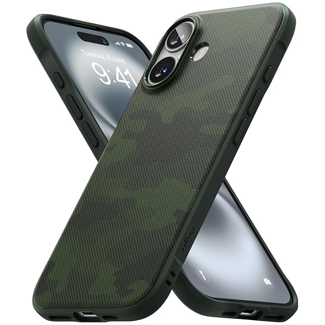 【Ringke】iPhone 16 ケース ONYX TPU 斜め掛け 滑り止め 落下防止 耐衝撃 米軍MIL規格取得 軽量ケース 柔軟ケース スマホケース スマホカバー アイフォン16 (ストラップホールあり) - Camo Green