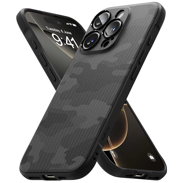 【Ringke】iPhone 16 Pro Max ケース ONYX TPU 斜め掛け 滑り止め 落下防止 耐衝撃 米軍MIL規格取得 軽量ケース 柔軟ケース スマホケース スマホカバー アイフォン16プロマックス (ストラップホールあり) - Camo Black