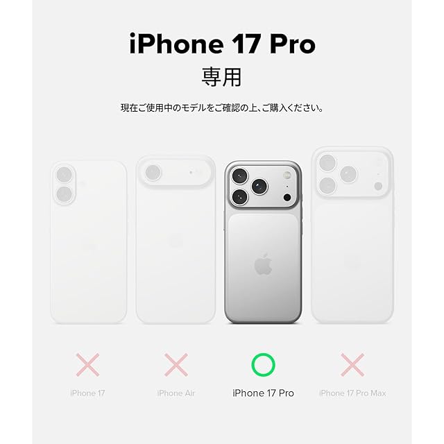 【Ringke】 iPhone 17 Pro対応のスリムで耐久性に優れたTPUケース「Onyx」。<br>指紋が付きにくいグラニュレート(粒状)テクスチャの背面と、滑りにくいマイクロドットのエンボス加工を施した側面で、安定したグリップを実現。<br>高弾性で柔軟なTPU素材を使用し、優れた衝撃吸収性と耐久性を持ち、スマートフォンの自然なシルエットにフィット。<br>独特な粒状テクスチャが全体に広がり、片手での操作も快適で滑り落ちにくい設計です。<br>画面周囲のエッジはわずかに高く設計され、平面置き時の直接接触を防止。<br>カメラ周りは完全に覆われており、より強力な保護を提供。<br>ボタン部分は保護されつつも、確かなタッチ感と正確なカットアウトで快適な操作性。<br>ケース両側にはストラップホールが2つ搭載されており、お好みのストラップやランヤードを取り付けて落下防止や個性演出が可能。<br>ワイヤレス充電対応で、Apple Payなどのタップ決済も即座に反応。<br>スタイリッシュさと堅牢性を兼ね備えた日常使いに最適なケースです。