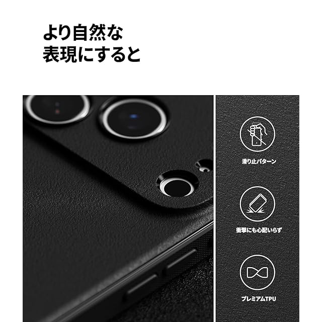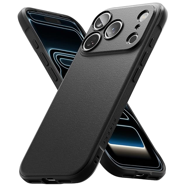 【Ringke】iPhone 17 Pro Max対応のスリムで耐久性に優れたTPUケース「Onyx」。<br>指紋が付きにくいグラニュレート(粒状)テクスチャの背面と、滑りにくいマイクロドットのエンボス加工を施した側面で、安定したグリップを実現。<br>高弾性で柔軟なTPU素材を使用し、優れた衝撃吸収性と耐久性を持ち、スマートフォンの自然なシルエットにフィット。<br>独特な粒状テクスチャが全体に広がり、片手での操作も快適で滑り落ちにくい設計です。<br>画面周囲のエッジはわずかに高く設計され、平面置き時の直接接触を防止。<br>カメラ周りは完全に覆われており、より強力な保護を提供。<br>ボタン部分は保護されつつも、確かなタッチ感と正確なカットアウトで快適な操作性。<br>ケース両側にはストラップホールが2つ搭載されており、お好みのストラップやランヤードを取り付けて落下防止や個性演出が可能。<br>ワイヤレス充電対応で、Apple Payなどのタップ決済も即座に反応。<br>スタイリッシュさと堅牢性を兼ね備えた日常使いに最適なケースです。