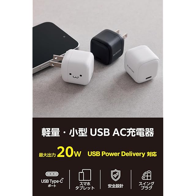 エレコム 充電器 Type-C 20W USB PD対応 USB-C 1ポート 折りたたみ式プラグ PSE認証 【 iPhone 16 15 OPPO Pixel など各種対応】 しろちゃん EC-AC7320WF
