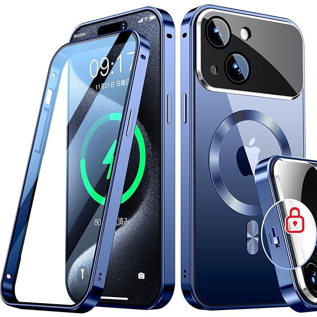 【高精度メカニカルロック和360°全面保護】このiPhone 15 Plus ケースの上部には高精度のメカニカルロックが搭載されており、1回のスライドで1秒でロック/ロック解除が可能です。スマホケースを両側でしっかりとロックします。落としてもスマホがケースから落ちない、iPhoneを安全にロックする。さらに、複数の素材のアップグレードにより、ロックの耐久性と精度が大幅に向上しました。このいPhone15 Plusケースの両面は硬度9hの強化ガラス製です、側面には高品質の航空アルミ合金製を採用した高級感のある作り。前面、背面、側面、レンズをカバーできます。スクリーンテクターとレンズテクターを個別に購入するコストを節約し、ワンストップソリューションを提供します。