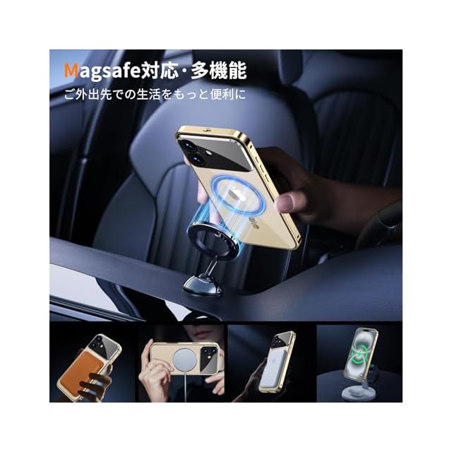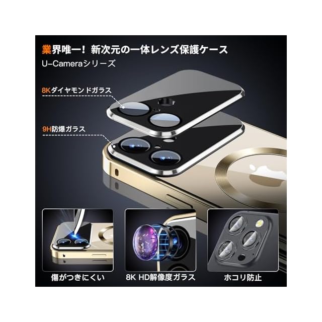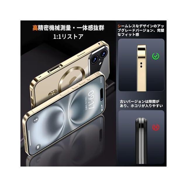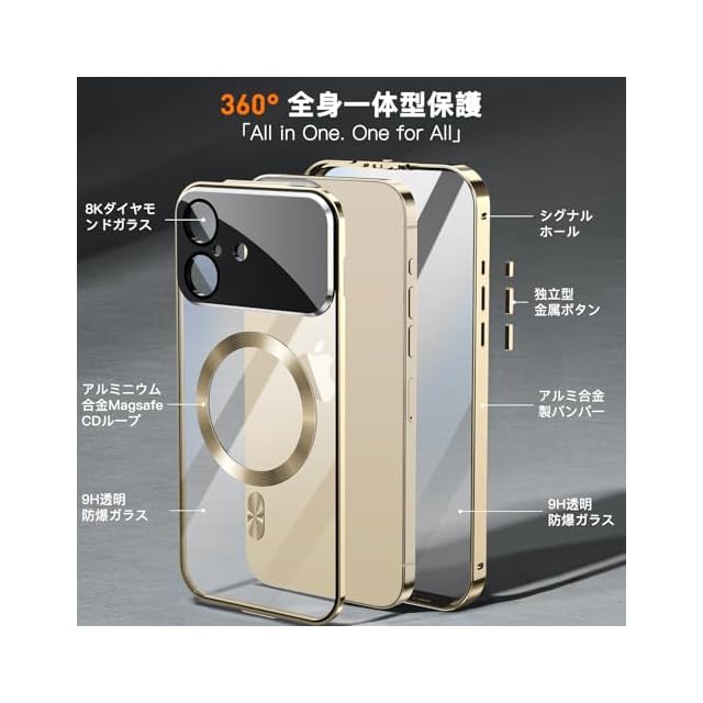 商品名:Rosycover【新次元の一体型レンズ・メカニカルロック】iPhone 16 Plus 用の ケース Magsafe対応 [360°全面保護・両面強化ガラス][本体の色・CD Magsafeリング]マグセーフ ワイヤレス充電対応 ストラップホール付き アルミ合金バンパース アイホン16プラス 金属 ケースマホケース16 クリア 人気 6.7インチ(ゴールド)