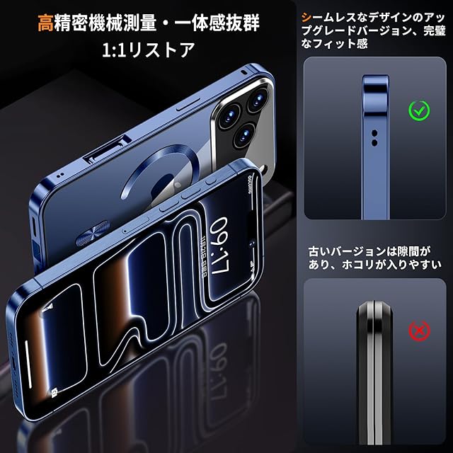 商品名:Rosycover【新次元の一体型レンズ・メカニカルロック】iPhone 17 Pro 用の ケース Magsafe対応[360°全面保護・両面強化ガラス][本体の色・CD Magsafeリング]マグセーフ ワイヤレス充電対応 ストラップホール付き アルミ合金バンパース アイホン17プロ 金属 ケースマホケース17 Pro クリア 人気 6.3インチ(チタンブルー)