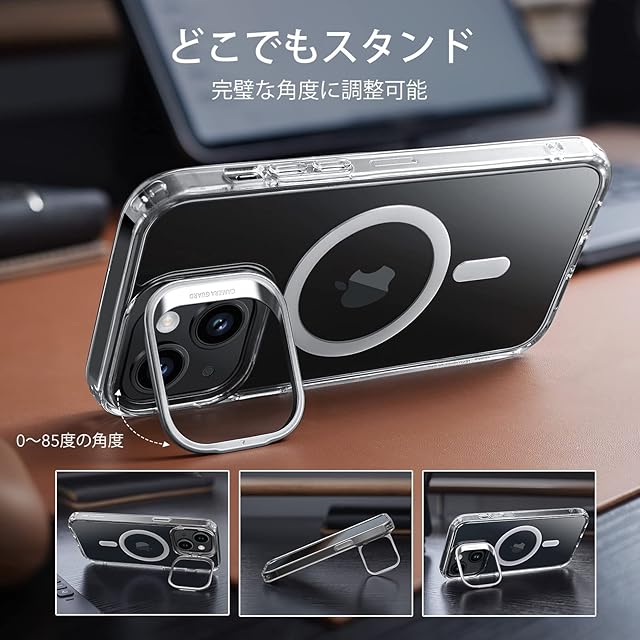 ESR いphone14 ケース iPhone13 ケース【デザイン受賞シリーズ!】 米軍MIL規格 耐黄変 耐衝撃 隠れスタンド iPhone14用 MagSafe対応 スマホケース 傷防止背面 ワイヤレス充電対応 あいふぉん14 Classic シリーズ クリア