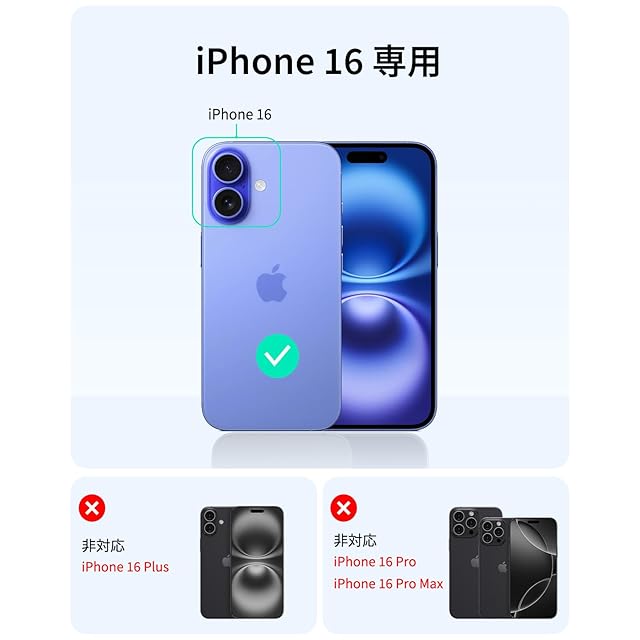 【米軍MIL規格の保護】衝撃吸収エアガードコーナーと隆起したスクリーンエッジ、カメラガードの組み合わせにより、落下、衝突、傷から保護します。対応機種:iPhone16ケース