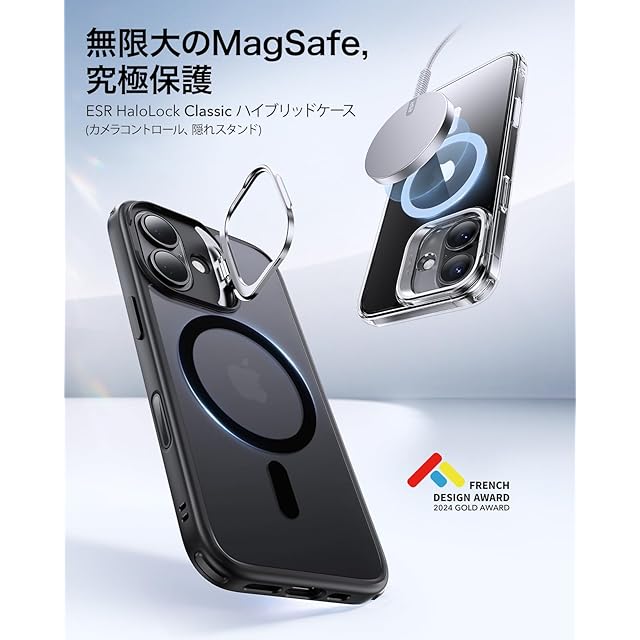 商品名:【デザイン受賞シリーズ!】ESR iPhone 16 Plus ケース MagSafe 対応 カメラコントロール 隠しスタンド 多角度調整 iphone16plus 専用 ワイヤレス充電対応 米軍MIL規格 耐衝撃 iphone16プラス いphone16plusケース 傷防止 軽量 スマホケース Classicシリーズ つや消しブラック