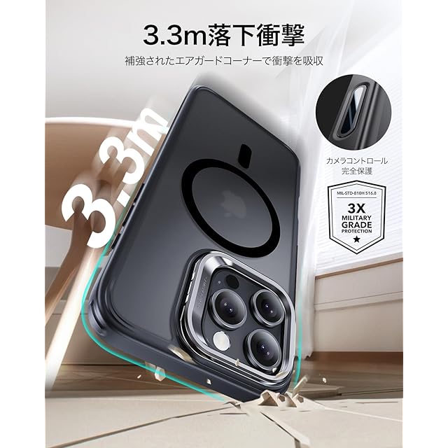 【米軍MIL規格の保護】衝撃吸収エアガードコーナーと隆起したスクリーンエッジ、いPhone 16 Pro Max ケース のカメラガードの組み合わせにより、落下、衝突、傷から保護します