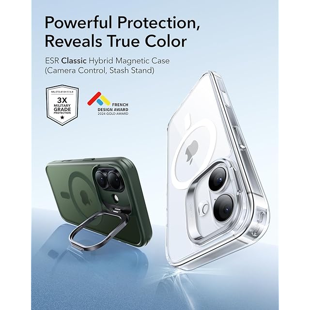【デザイン受賞シリーズ!】ESR iPhone 17 ケース MagSafe対応 3倍米軍MIL規格 カメラボタン付き 隠しスタンド 調整可能 ワイヤレス充電対応 エアガードコーナー 耐衝撃 傷防止 軽量 マグネットスマホケース 高耐久性 Qi2.2対応 最大25W高速充電 いphone17ケース アイフォン17専用Classicシリーズ(フロストグリーン)