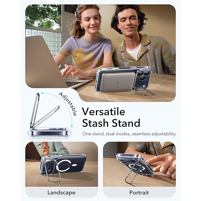 【デザイン受賞シリーズ!】ESR iPhone 17 Pro Max ケース MagSafe対応 3倍米軍MIL規格 カメラボタン付き 隠しスタンド 調整可能 ワイヤレス充電 エアガードコーナー 耐衝撃 傷防止 軽量 マグネット 高耐久性 Qi2.2対応 最大25W高速充電 いphone17promaxケース アイフォン17プロマックス専用Classicシリーズ(クリア)