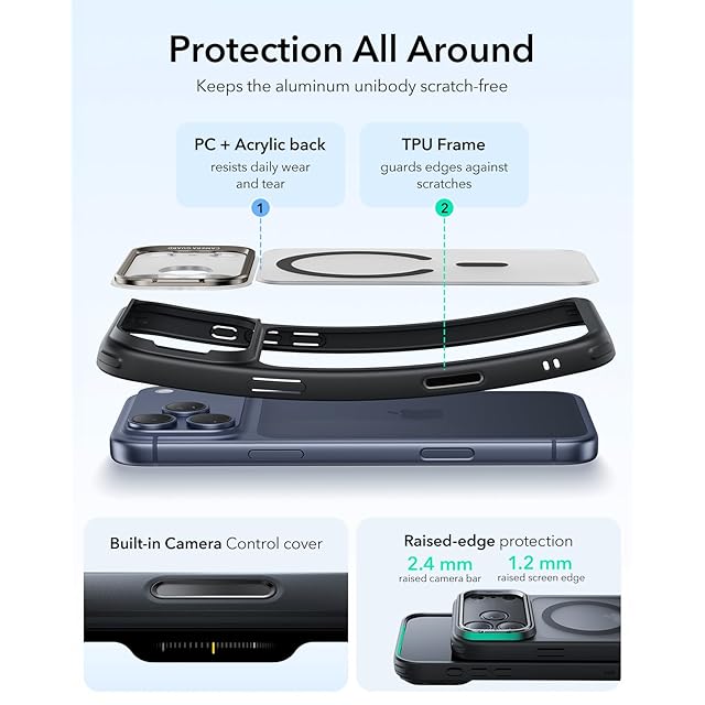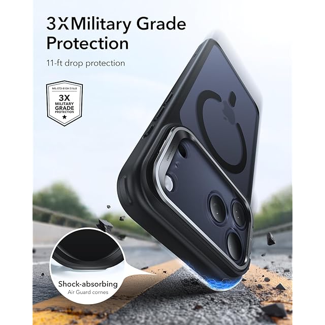 【デザイン受賞シリーズ!】ESR iPhone 17 Pro Max ケース MagSafe対応 3倍米軍MIL規格 カメラボタン付き 隠しスタンド 調整可能 ワイヤレス充電 エアガードコーナー 耐衝撃 傷防止 軽量 マグネット 高耐久性 Qi2.2対応 最大25W高速充電 いphone17promaxケース アイフォン17プロマックス専用Classic(フロストブラック)