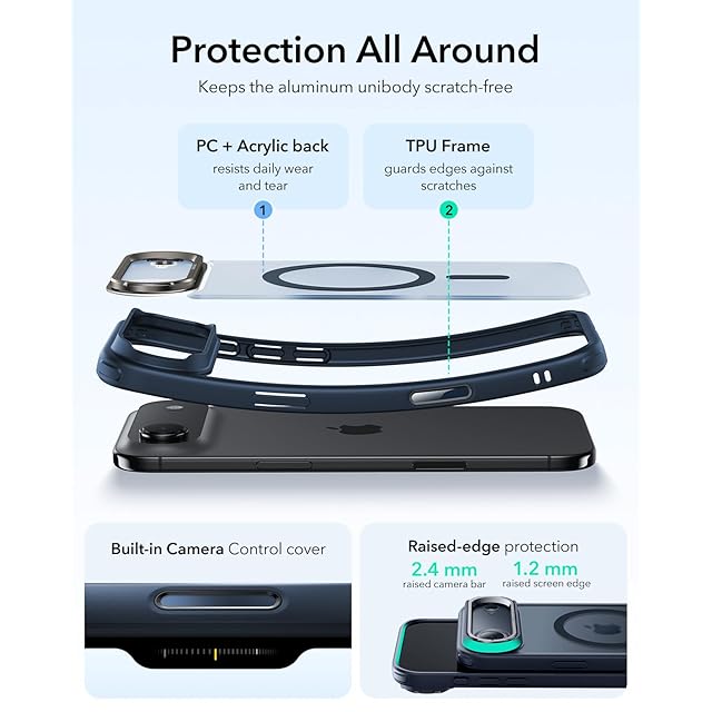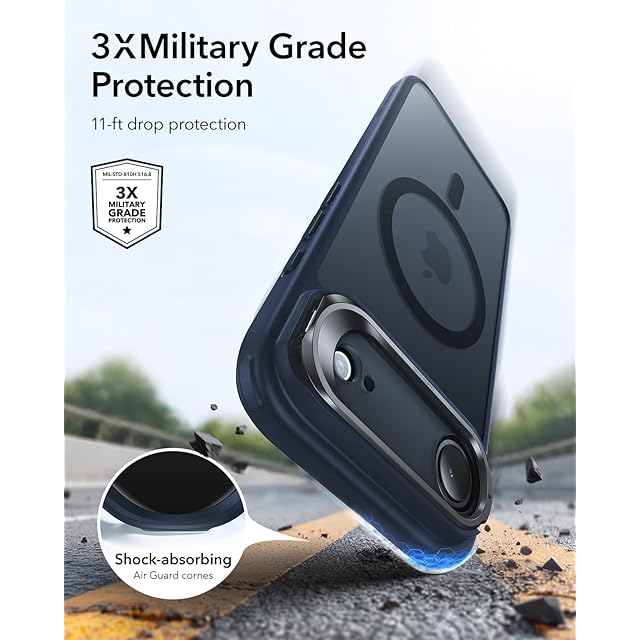 【デザイン受賞シリーズ!】ESR iPhone Air ケース MagSafe対応 3倍米軍MIL規格 カメラコントロールカバー 隠れスタンド 調整可能 2層構造カメラ保護 ワイヤレス充電 エアガードコーナー 耐衝撃 傷防止 軽量 マグネットスマホケース 高耐久性 Qi2.2対応 最大25W高速充電 iPhone Airケース phoneAir用Classicシリーズ フロストブルー