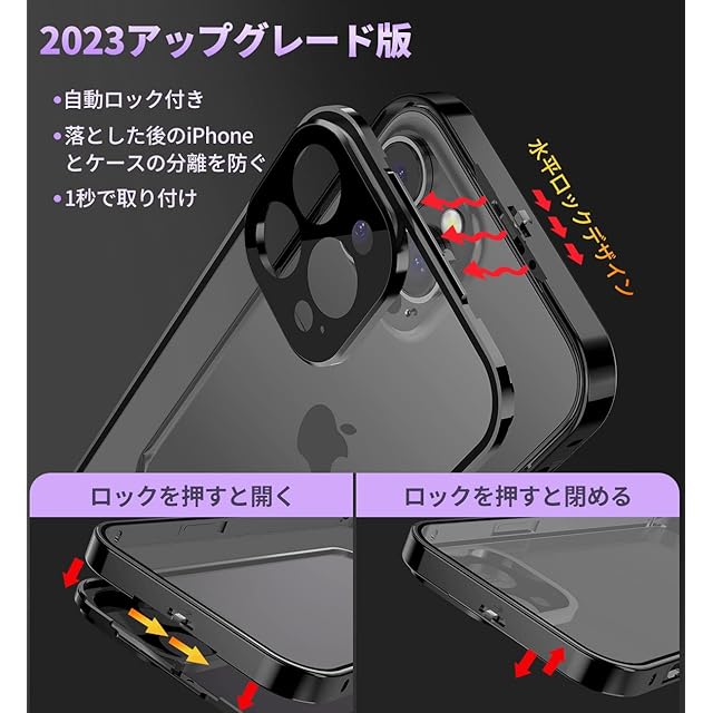 【ロック機能付き・1秒で取り付け・一体型レンズ保護付き】革新的な技術、このiPhone12 Pro 両面ケースは上部にスライドボタン式のロックがあり、前後のケースをしっかり固定します。上部のボタンを押すだけで、ロックの解除も簡単、取り付けで開く非常に便利です。こちらのアイフォン12プロ ケースであなたの大切なスマホを守ってあげてください!このiPhone12 Pro ケースのバンパーとレンズ保護フィルムが一体型になっており、背面カメラ周りを覆い、カメラへの傷を防ぐ、カメラレンズ保護設計です。★レンズの保護フィルムの必要はありません。(注意:この製品を使用する際には、説明書を読んでからインストールすることを強くお勧めします。取り付けるとき、後カバーの下部の凸凹部分を確認してください。後カバーと前カバーの底部が位置合わせされ、ぴったりとフィットしていることを確認してください。)