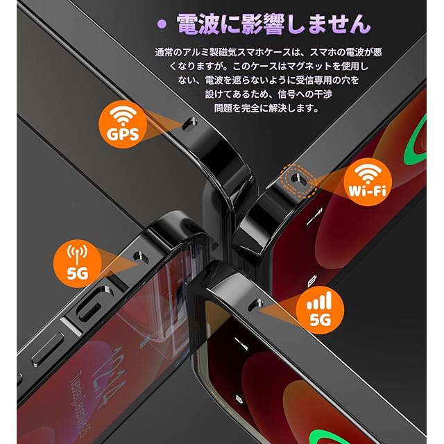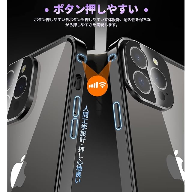【メタルフレーム・背面クリア・信号干渉なし】このスマホケース iphone12 pro maxは、高品質の航空アルミニウム合金製フレームを使用しており、おしゃれで高級感が溢れています。酸化の表面処理により保護カバーは擦れに強い、傷つきにくい。このiPhone12 Pro Max 全面保護ケースの背面として高透過率に経ったガラス素材を用い、本体の色をより良く楽しめる、より一層高級感を引き出せます。本体の美しさをエンジョイする際に、ご好みの写真・ステッカーなども入れ、カスタマイズが可能です。このiPhone12 Pro Max ケースは信号強度が影響を受けないように設計されています。ケースはマグネットを使用しない、電波を遮らないように受信専用の穴を設けてあるため、信号は良好で、WiFiは遮られていません。