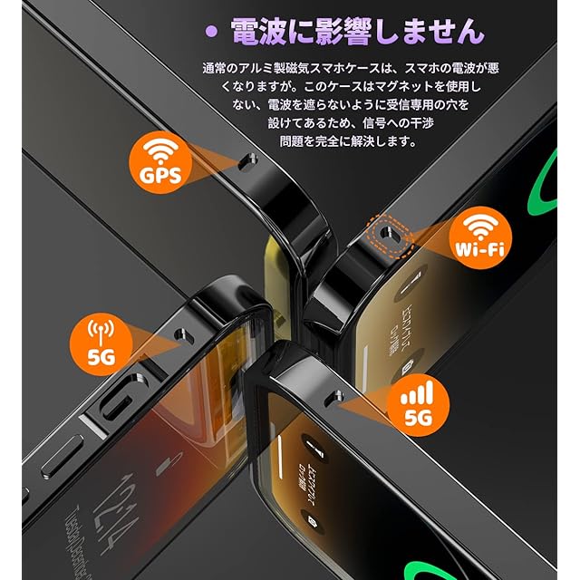 【メタルフレーム・背面クリア・信号干渉なし】このスマホケース iphone13 pro maxは、高品質の航空アルミニウム合金製フレームを使用しており、おしゃれで高級感が溢れています。酸化の表面処理により保護カバーは擦れに強い、傷つきにくい。このiPhone13 Pro Max 全面保護ケースの背面として高透過率に経ったガラス素材を用い、本体の色をより良く楽しめる、より一層高級感を引き出せます。本体の美しさをエンジョイする際に、ご好みの写真・ステッカーなども入れ、カスタマイズが可能です。このiPhone13 Pro Max ケースは信号強度が影響を受けないように設計されています。ケースはマグネットを使用しない、電波を遮らないように受信専用の穴を設けてあるため、信号は良好で、WiFiは遮られていません。