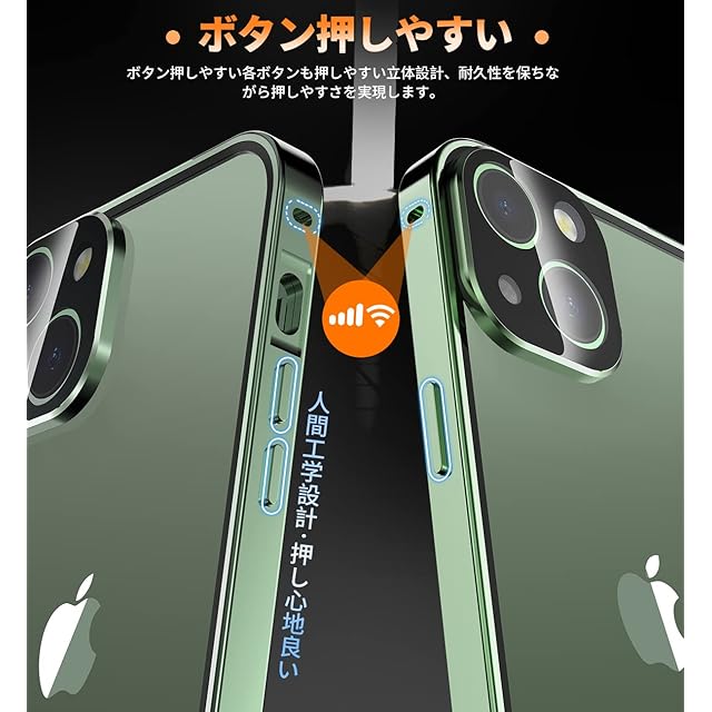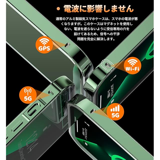 【メタルフレーム・背面クリア・信号干渉なし】このスマホケース iphone13 miniは、高品質の航空アルミニウム合金製フレームを使用しており、おしゃれで高級感が溢れています。酸化の表面処理により保護カバーは擦れに強い、傷つきにくい。このiPhone13 mini全面保護ケースの背面として高透過率に経ったガラス素材を用い、本体の色をより良く楽しめる、より一層高級感を引き出せます。本体の美しさをエンジョイする際に、ご好みの写真・ステッカーなども入れ、カスタマイズが可能です。このiPhone13 mini ケースは信号強度が影響を受けないように設計されています。ケースはマグネットを使用しない、電波を遮らないように受信専用の穴を設けてあるため、信号は良好で、WiFiは遮られていません。