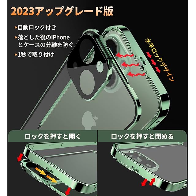 【ロック機能付き・1秒で取り付け・一体型レンズ保護付き】革新的な技術、このiPhone13 mini 両面ケースは上部にスライドボタン式のロックがあり、前後のケースをしっかり固定します。上部のボタンを押すだけで、ロックの解除も簡単、取り付けで開く非常に便利です。こちらのアイフォン13ミニ ケースであなたの大切なスマホを守ってあげてください!このiPhone13 mini ケースのバンパーとレンズ保護フィルムが一体型になっており、背面カメラ周りを覆い、カメラへの傷を防ぐ、カメラレンズ保護設計です。レンズの保護フィルムの必要はありません。