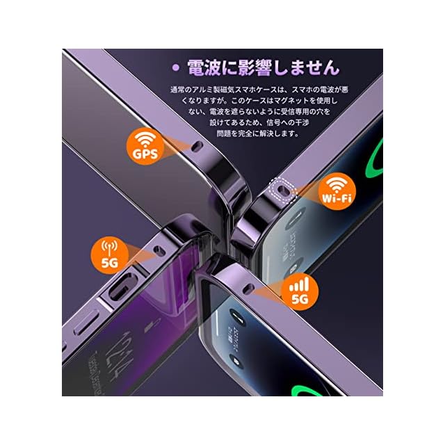 【メタルフレーム・背面クリア・信号干渉なし】このスマホケース iphone14 Plusは、高品質の航空アルミニウム合金製フレームを使用しており、おしゃれで高級感が溢れています。酸化の表面処理により保護カバーは擦れに強い、傷つきにくい。このiPhone14 Plus全面保護ケースの背面として高透過率に経ったガラス素材を用い、本体の色をより良く楽しめる、より一層高級感を引き出せます。本体の美しさをエンジョイする際に、ご好みの写真・ステッカーなども入れ、カスタマイズが可能です。このiPhone14 Plus ケースは信号強度が影響を受けないように設計されています。ケースはマグネットを使用しない、電波を遮らないように受信専用の穴を設けてあるため、信号は良好で、WiFiは遮られていません。