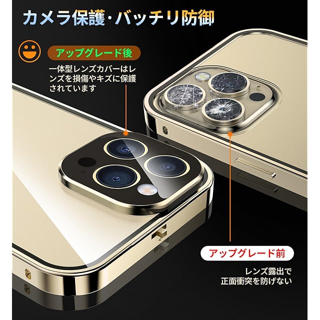 商品名:NIANGUO【ロック機能付き・自動ポップアップボタン】 iPhone16 Pro Max 用 ケース クリア 【両面強化ガラス】 9H硬度 【一体型レンズ保護】 アイフォン16プロマックス カバー アルミバンパー メタルフレーム 耐衝撃 傷防止 高感度タッチ 薄型 軽量 ワイヤレス充電対応 ストラップホール付き iPhone16 Pro Max 用 ケース 6.9インチ(ゴールド)